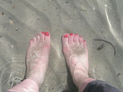 My toes in the water.....the rest of me also went in...I think the locals thought we were mad, but the water was warmer in March than at any time in Scotland!