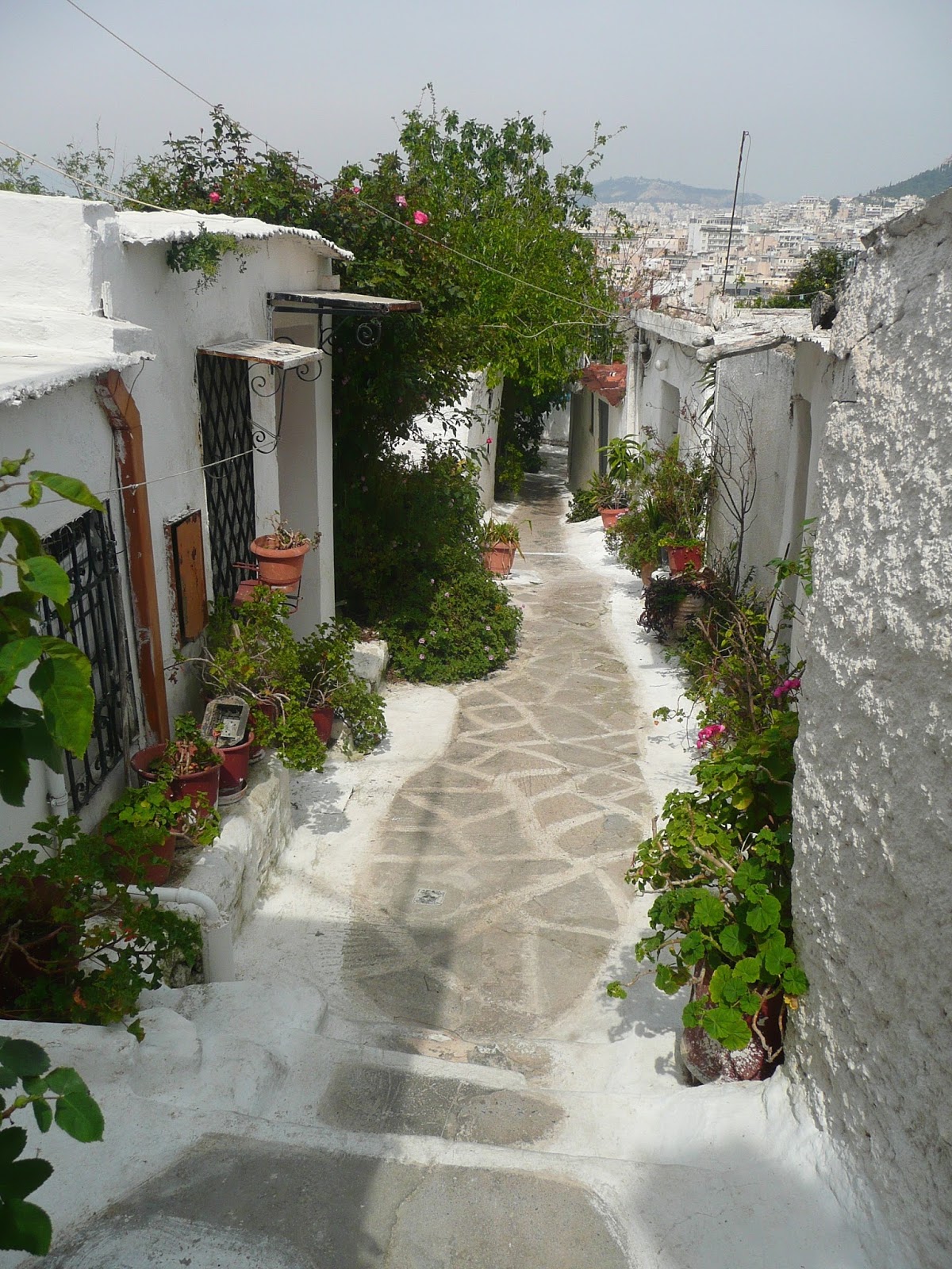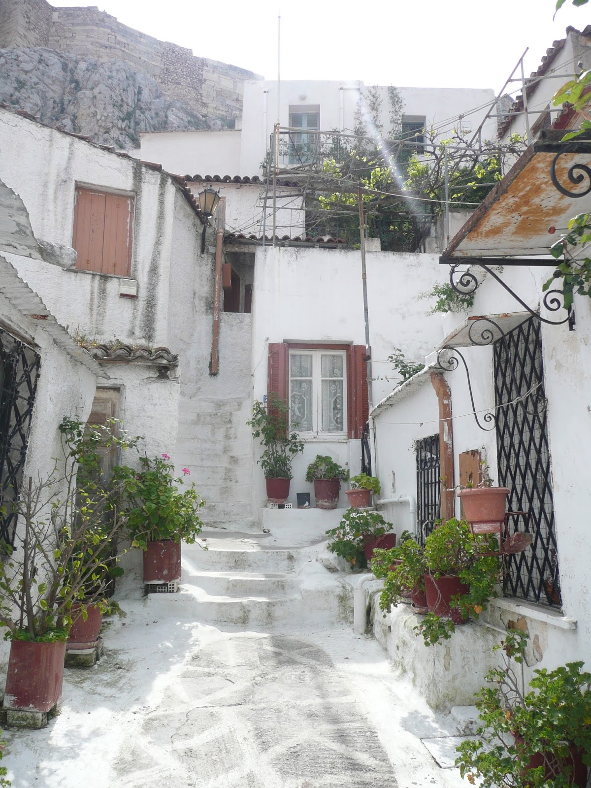 We took aim for the Acropolis....which can be seem from across the city....finding our way there was more of a challenge. However, in our meanderings we came across some beautiful little streets right below the Acropolis which could easily lead you to believe you were on a Greek island rather than in the middle of the city.